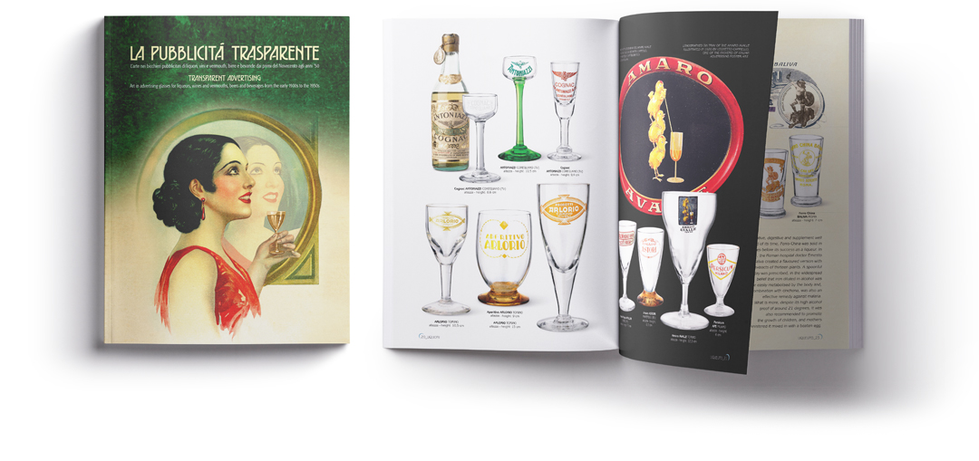 Per bere, brindare, festeggiare occasioni importanti, sancire accordi e contratti: nella storia dell'uomo i bicchieri sono stati molto di più di semplici suppellettili. Nel tempo si sono evoluti in mille forme diverse per esaltare le caratteristiche delle bevande a cui erano destinati. Con il diffondersi della réclame, sui bicchieri iniziarono a essere stampati il nome del marchio o del prodotto. Le 200 pagine di questo libro - che raccoglie oltre 800 esemplari, prodotti nella prima metà del secolo scorso - sono arricchite anche da moltissimi aneddoti, foto e immagini di manifesti a tema.